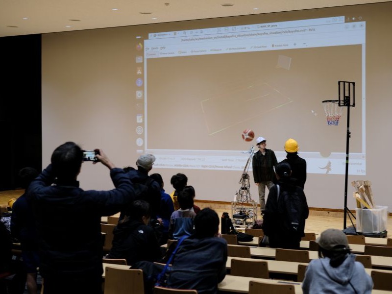 At the Chukyo University Children’s Sports Festa (Toyota Campus) held on Sunday, November 9, 2025, we demonstrated and exhibited a basketball shooting robot developed by our students.