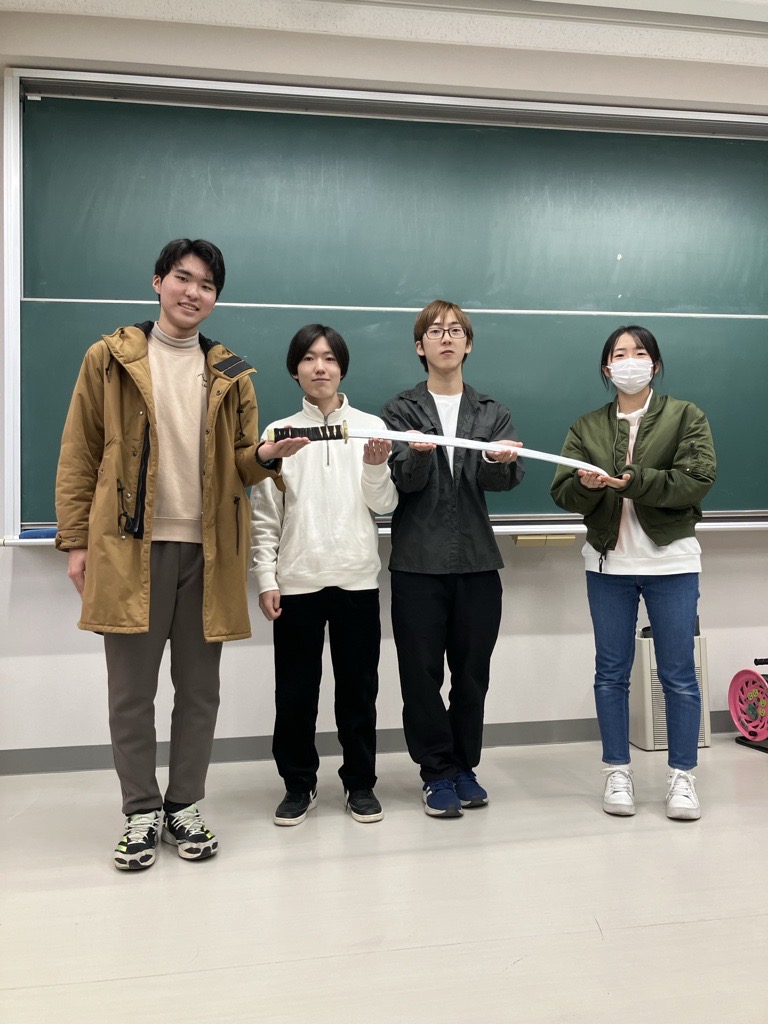[Participating students and the reproduced famous sword “Dojigiri”]