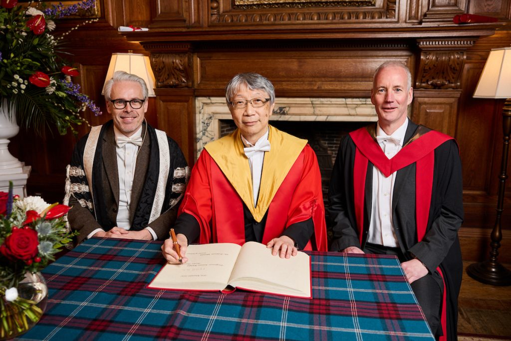 本校阿波賀校長は、2025年11月19日、英国スコットランドの首都エディンバラに所在するエディンバラ大学より、これまでの研究・教育・国際活動における卓越した貢献が認められ、名誉博士号(Doctor honoris causa)を授与されました。日本人がこの名誉を受けることは極めて稀です。