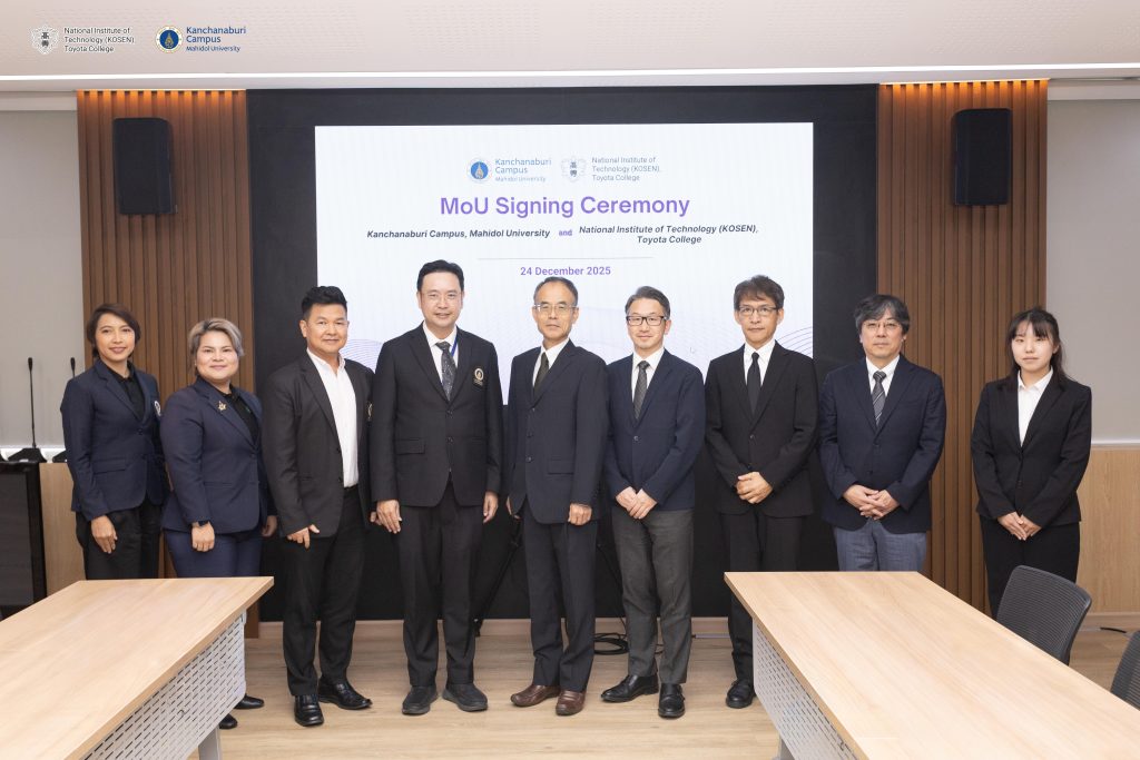 2025年12月24日にタイ王国のマヒドン大学カンチャナブリキャンパス(MUKA)との間でMOU(学術交流協定)を締結しました。マヒドン大学は医学を筆頭に、科学、獣医学、工学、人文学など幅広い分野で教育研究を行うタイの最高峰の総合国立大学です。