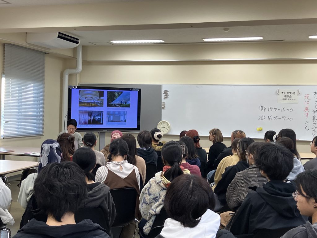 同窓会から特別助成を頂き、2025年12月19日(金)に建築学科では、「キャリア形成座談会」を開催しました。卒業生にお越し頂くイベントとしては5月に開催している「同窓会講演会」がありますが、それよりもカジュアルな雰囲気で、かつ幅広い学年の在校生が卒業生と近い距離で話ができる機会を作ることが目的でした。